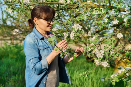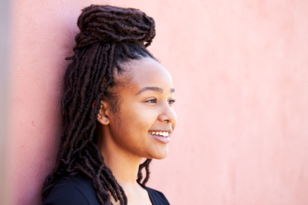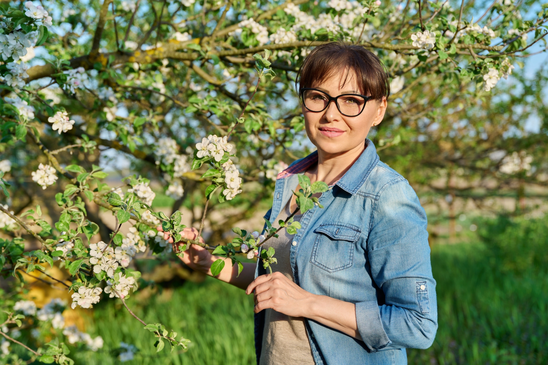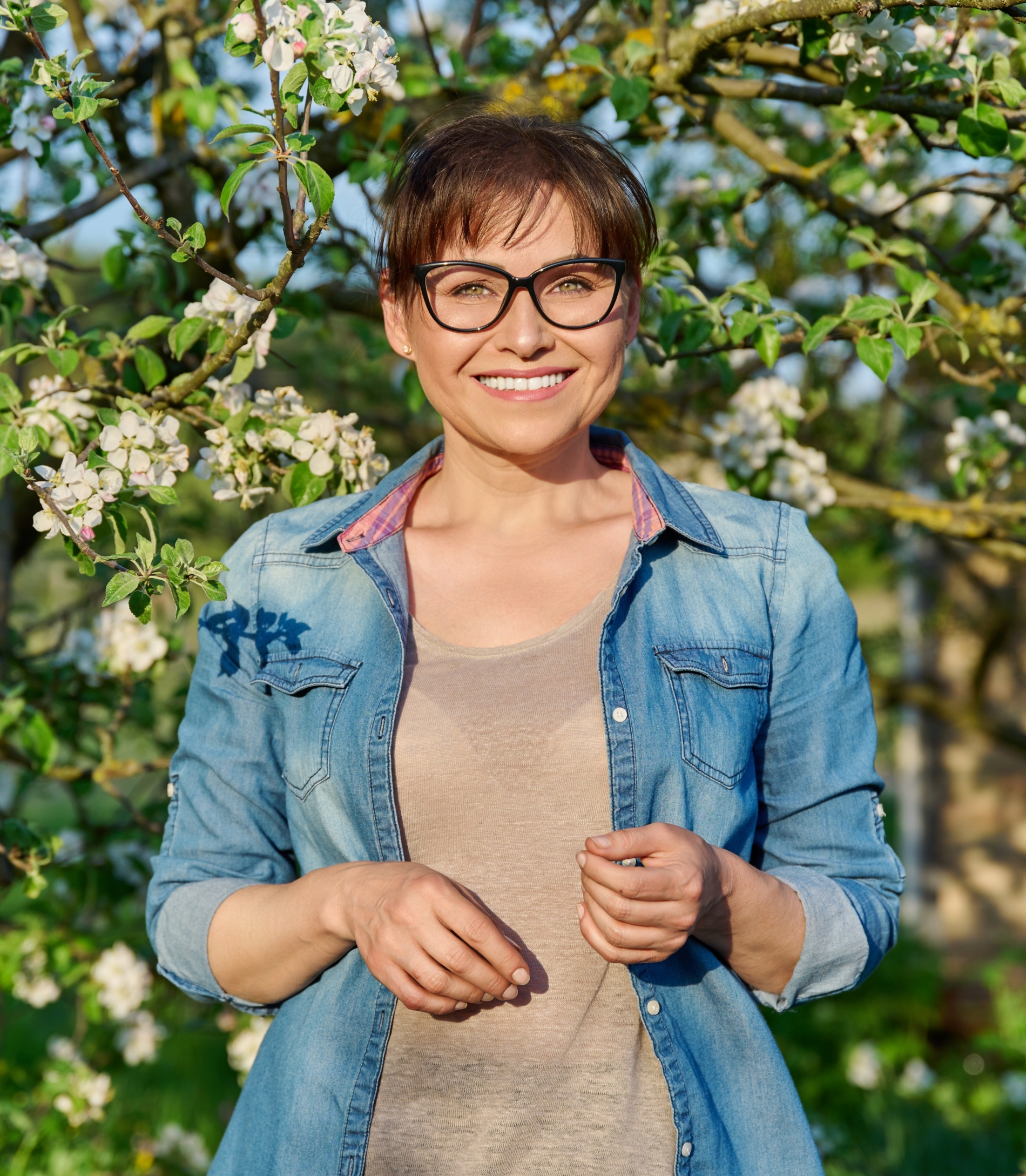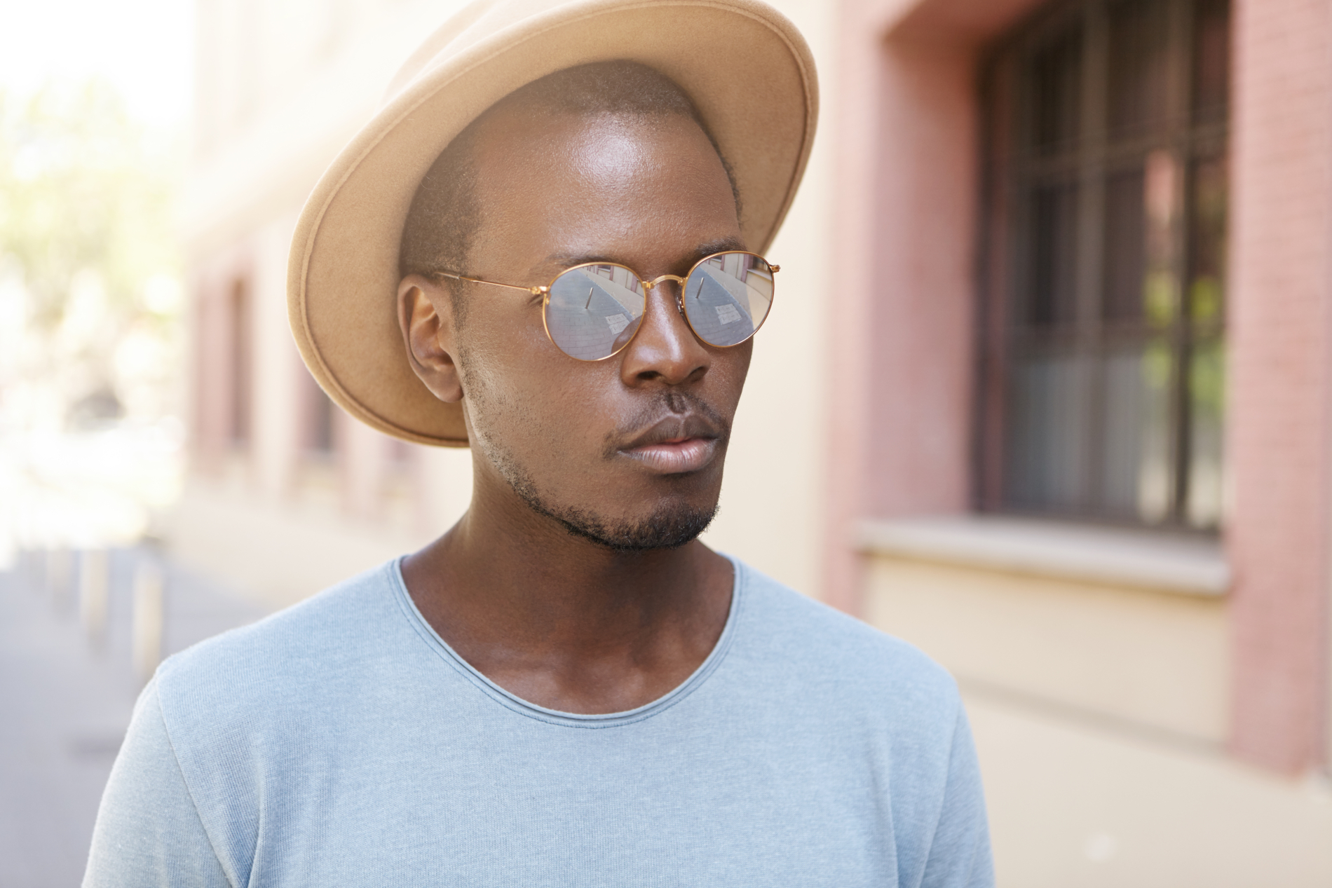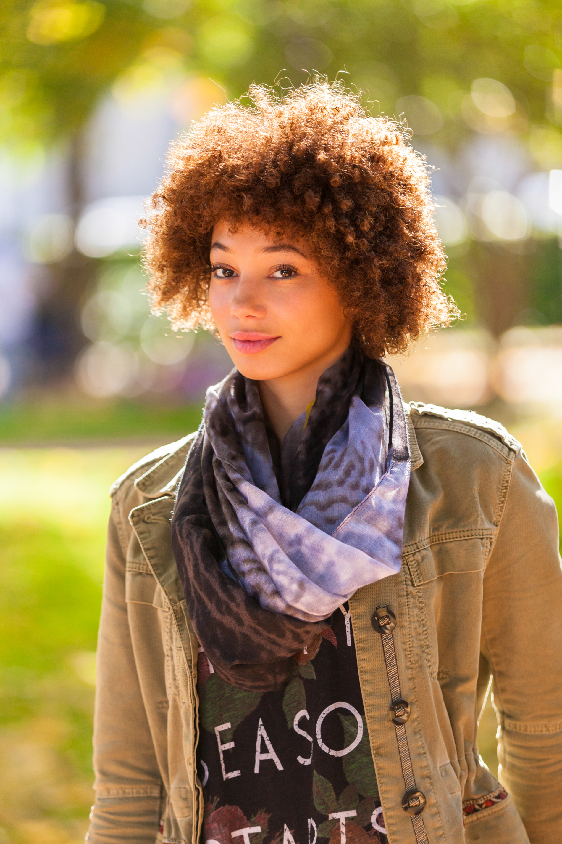 Winsome girl in black sunglasses looking at sky on nature background. Outdoor shot of fashionable brunette woman spending time outdoor in evening.Photo by Blahdownload original